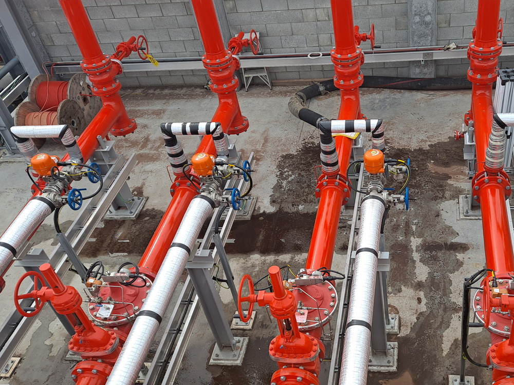 New water supply to wharf abutment spray cage and under wharf deluge system